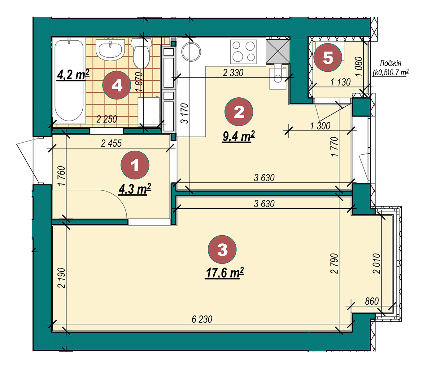 1-кімнатна квартира 36,2 м²