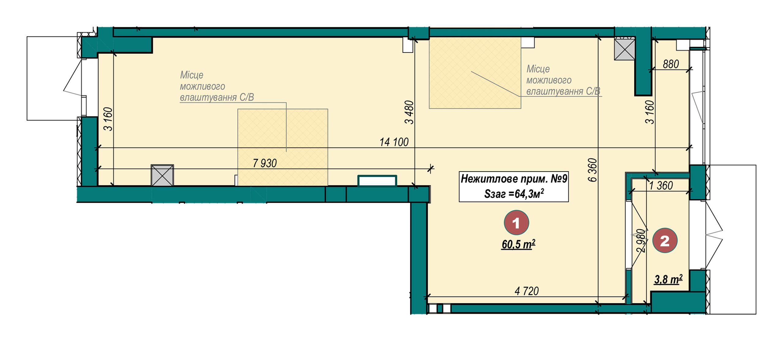 Нежитлове приміщення 64,3 м²